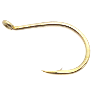This is another fishing hook that was developed for fishing with bait, but is now also being used for artificial bait. Known as an egg hook, this style is generally used by trout fishers using natural salmon eggs as bait. Today's fly tiers create artificial egg patterns to simulate salmon eggs and many prefer this hook style because the up-eye does not close off the hook gape and the angle of pull enhance hook-ups.