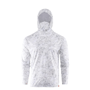 The Tough Sun Masked Hoodie in Squall Camo and Iceberg is built to deliver reliable sun protection and comfort during long days on the water. UPF 50 rated fabric helps shield skin from harmful rays, while a durable construction resists snags and wear in active fishing environments. An integrated face mask offers added coverage for the face and neck and can be worn up or stored away as conditions change. A full coverage hood and thumb holes provide consistent protection in high exposure areas, helping reduce the need for constant adjustment. Moisture wicking and quick drying performance support comfort in hot conditions, while odor control and stain resistance make the hoodie easy to wear day after day. Designed for anglers who demand coverage without sacrificing mobility, the Tough Sun Masked Hoodie is a dependable layer for sun intense sessions.