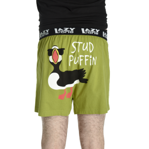 Talk about a perfect fit for all you Stud Puffins out there! Made from soft 100% combed cotton knit, our boxers have a roomy fit with a button fly and an exposed elastic band. It's easy to see why the butt stops here!a 100% Combed Cotton Knita Exposed Elastic Waistbanda Button flya Backside is one panel of fabric - no seams to interfere with graphicsa Permanent No Fade Printa Preshrunk